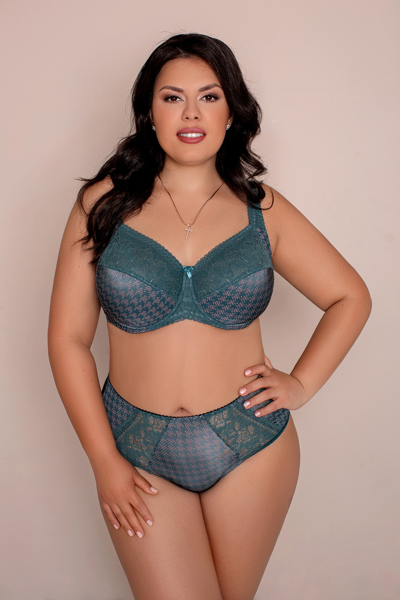 Комбинированная чашка из эластичного кружева и принтованного эластичного полотна. Эластичное полотно дублировано хлопком. На каркасах. В модели Б 296,maxi кружево дублировано сеткой для лучшей формоустойчивости.