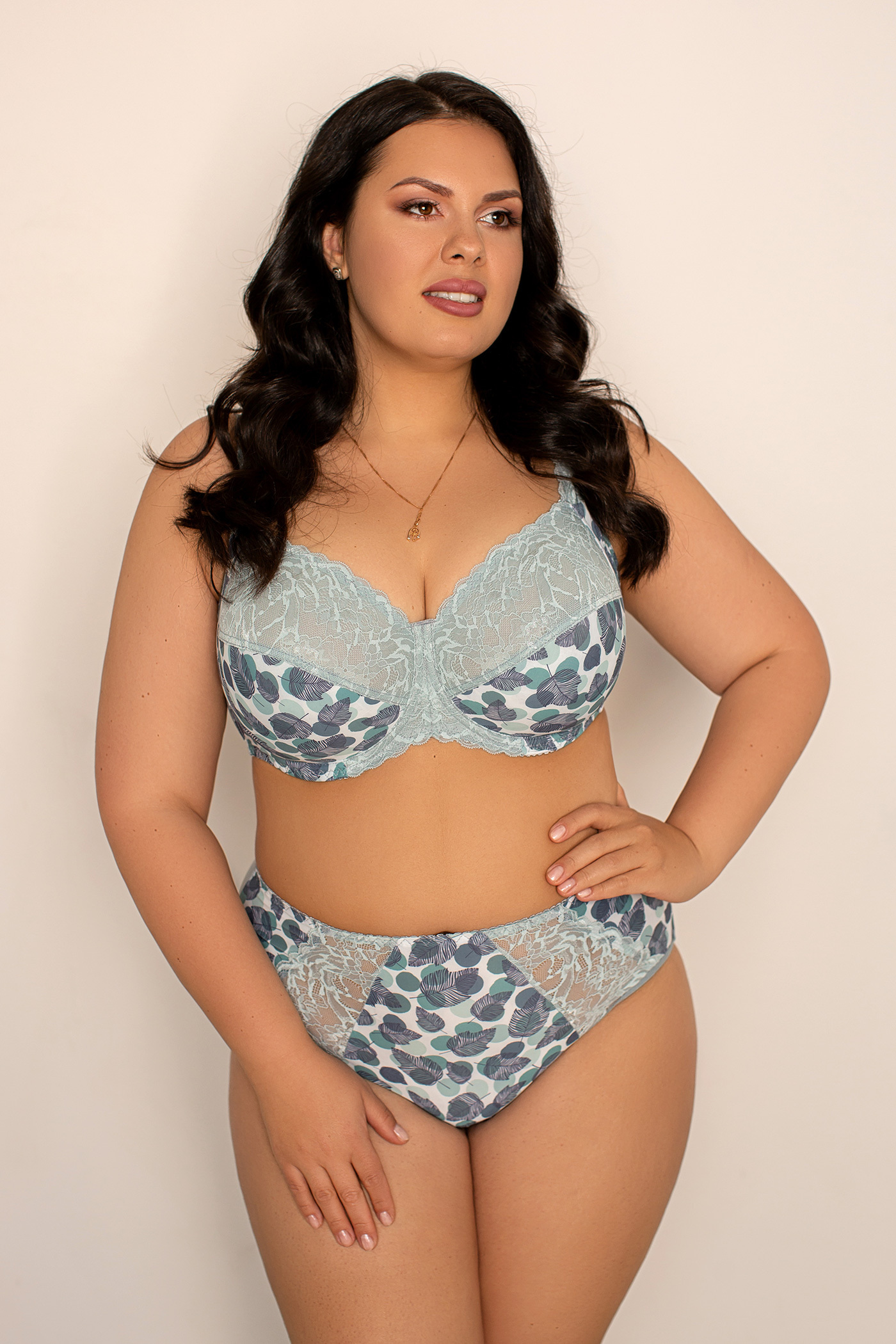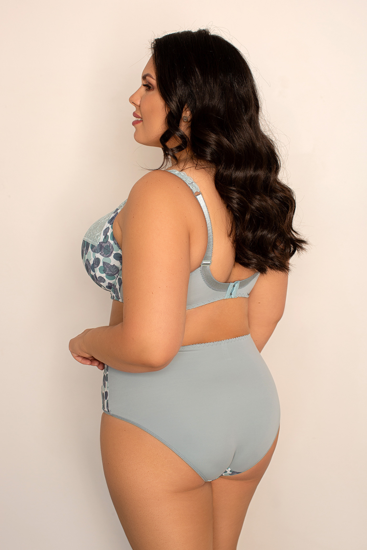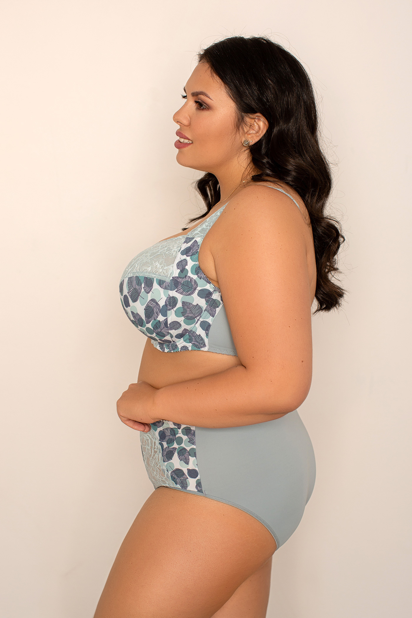 Мягкая чашка из эластичного кружева и эластичной микрофибры. Чашка внутри дублирована хлопком. В модели предусмотрены подгрудные косточки. Очень удобная модель для ежедневного использования. Верх чашки и пояс бюстгальтера выполнены с дополнительным нижним слоем из эластичной сетки с целью улучшения формоустойчивости, что актуально для больших размеров.
