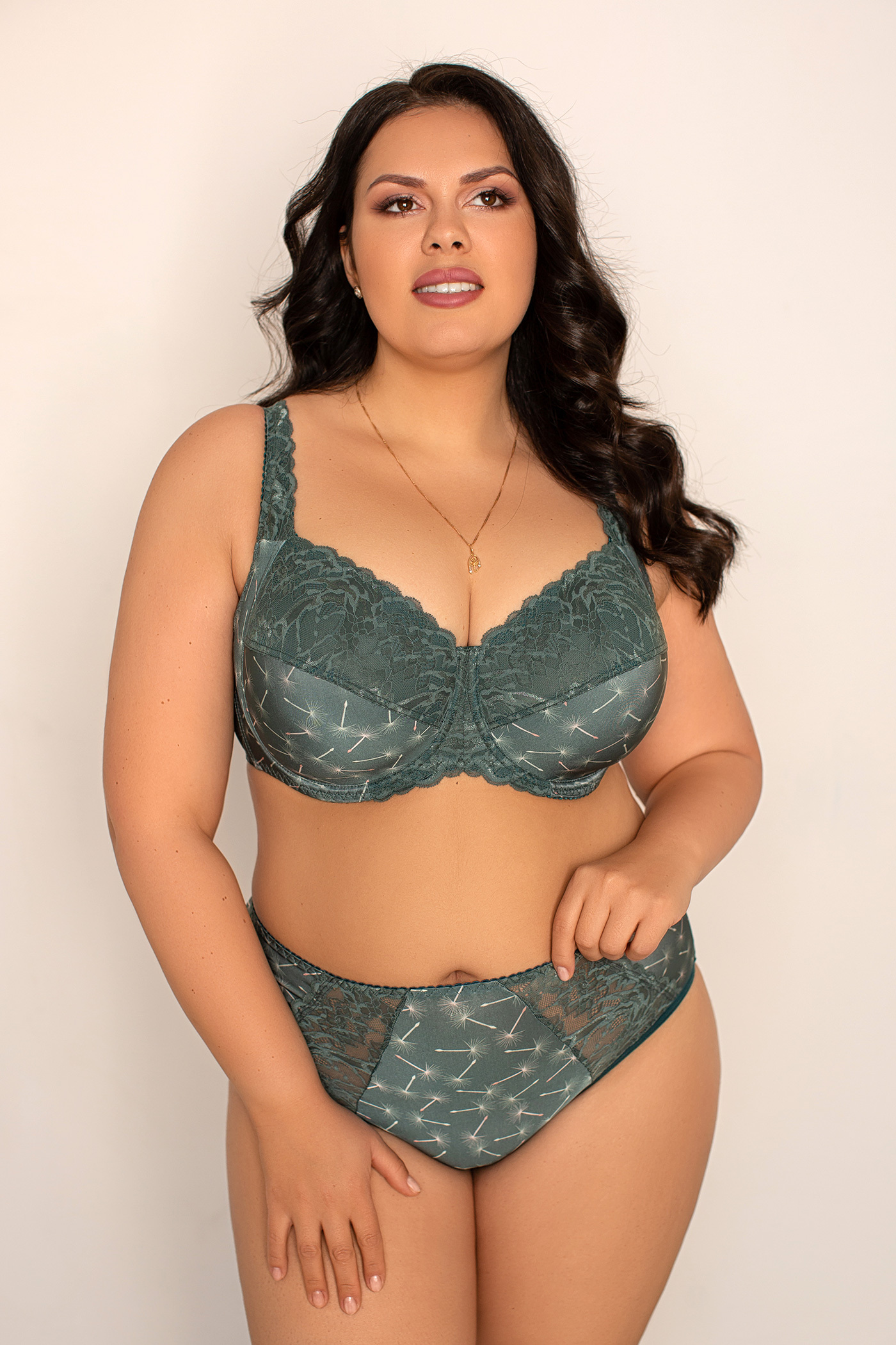 Мягкая чашка из эластичного кружева и эластичной микрофибры. Чашка внутри дублирована хлопком. В модели предусмотрены подгрудные косточки. Очень удобная модель для ежедневного использования. Верх чашки и пояс бюстгальтера выполнены с дополнительным нижним слоем из эластичной сетки с целью улучшения формоустойчивости, что актуально для больших размеров.