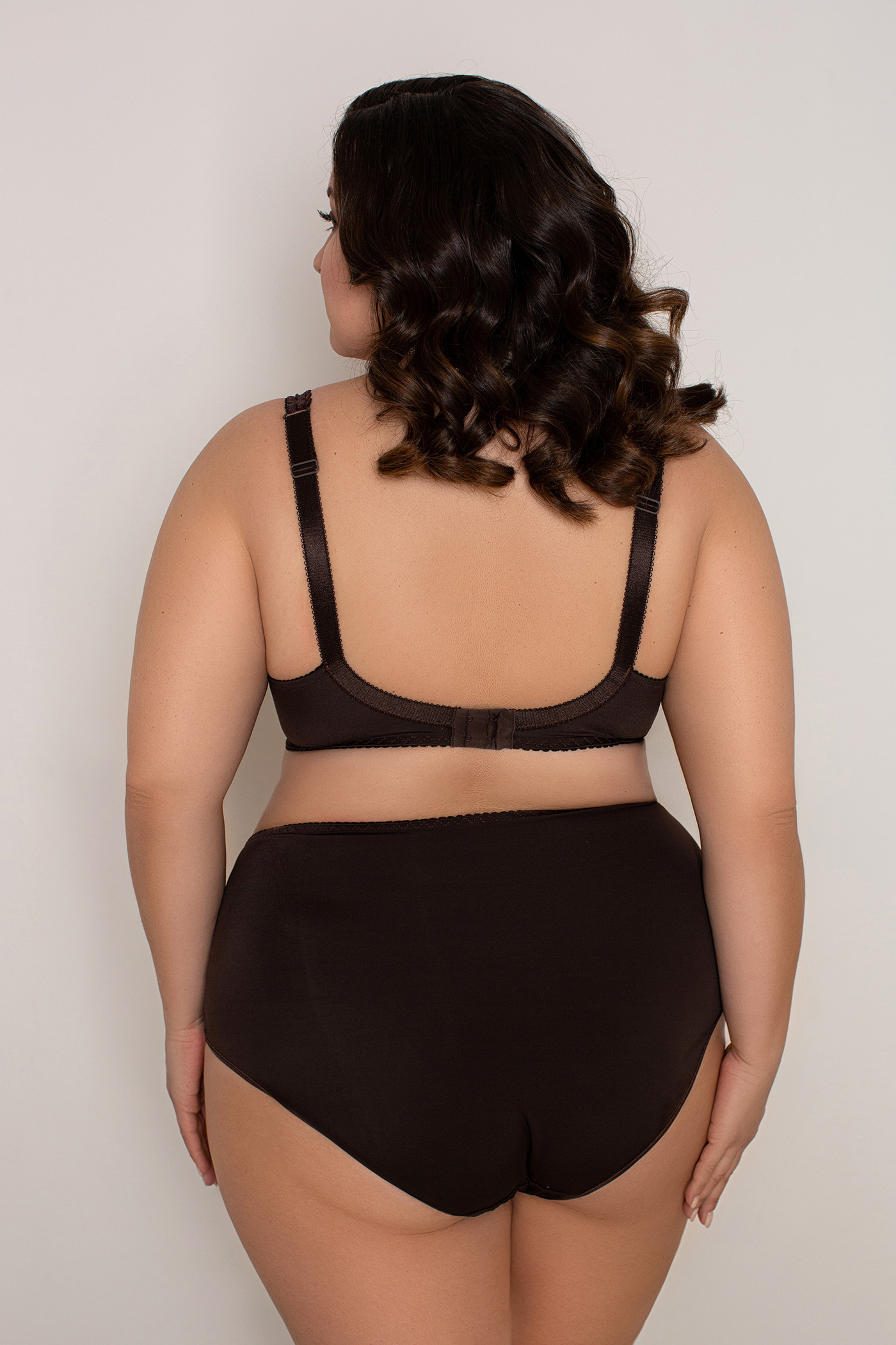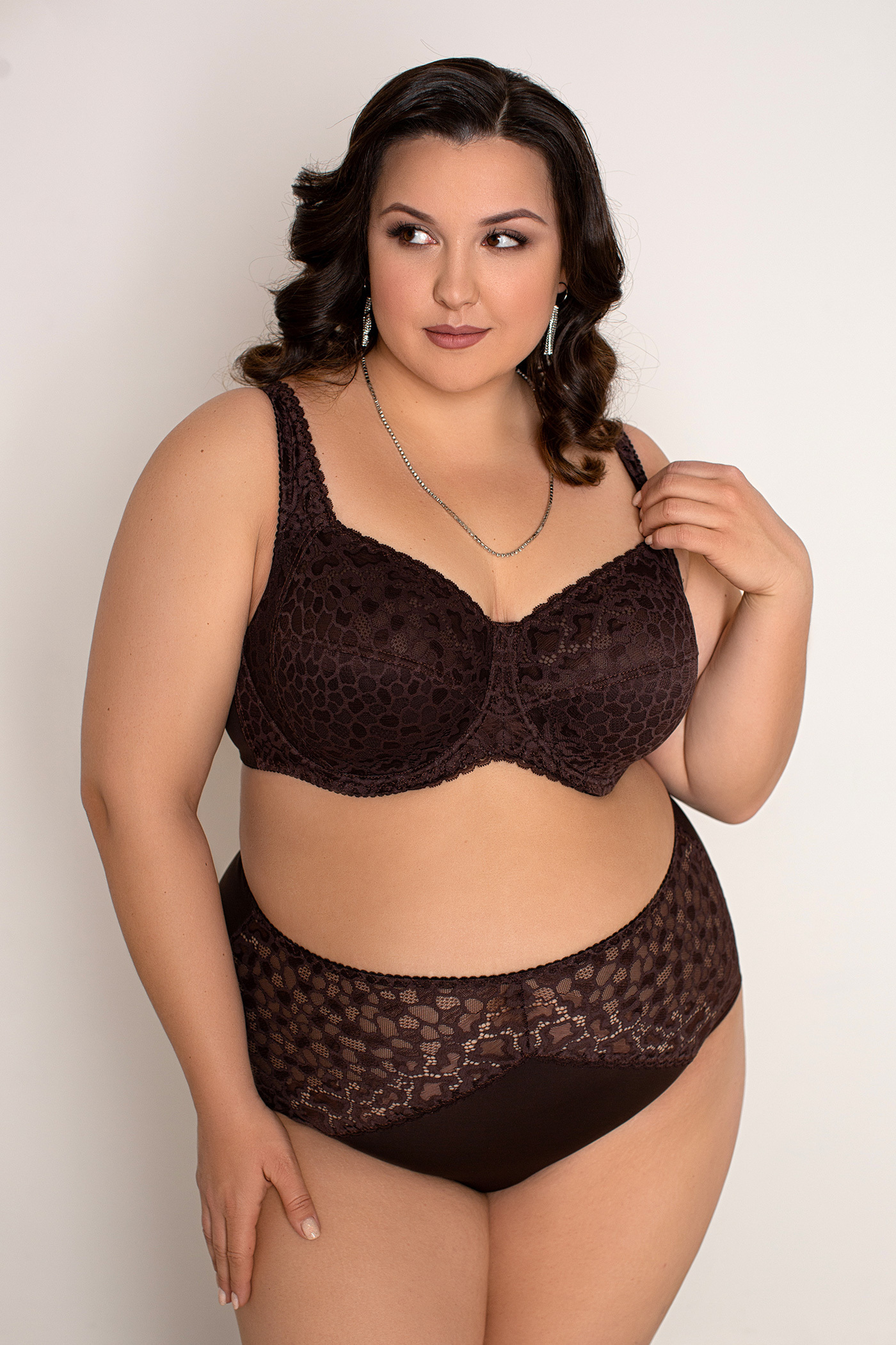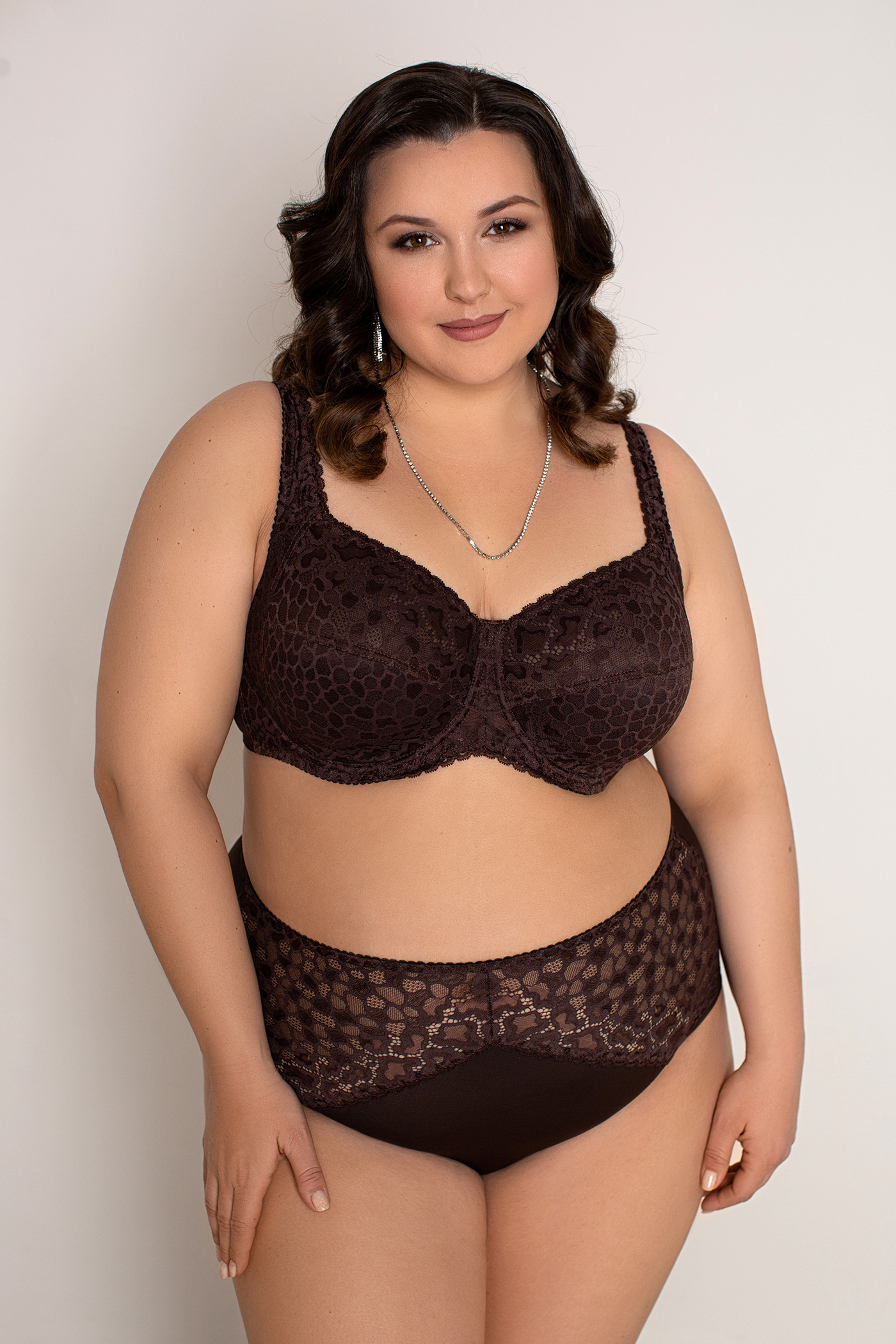 Мягкая чашка из эластичного кружева. Чашка внутри дублирована хлопком. В модели предусмотрены подгрудные косточки. Задние детали пояса бюстгальтера выполнены из однотонной микрофибры. Очень удобная модель для ежедневного использования. В модели 396-300 maxi верх чашки выполнен с дополнительным нижним слоем из эластичной сетки с целью улучшения формоустойчивости, что актуально для больших размеров.