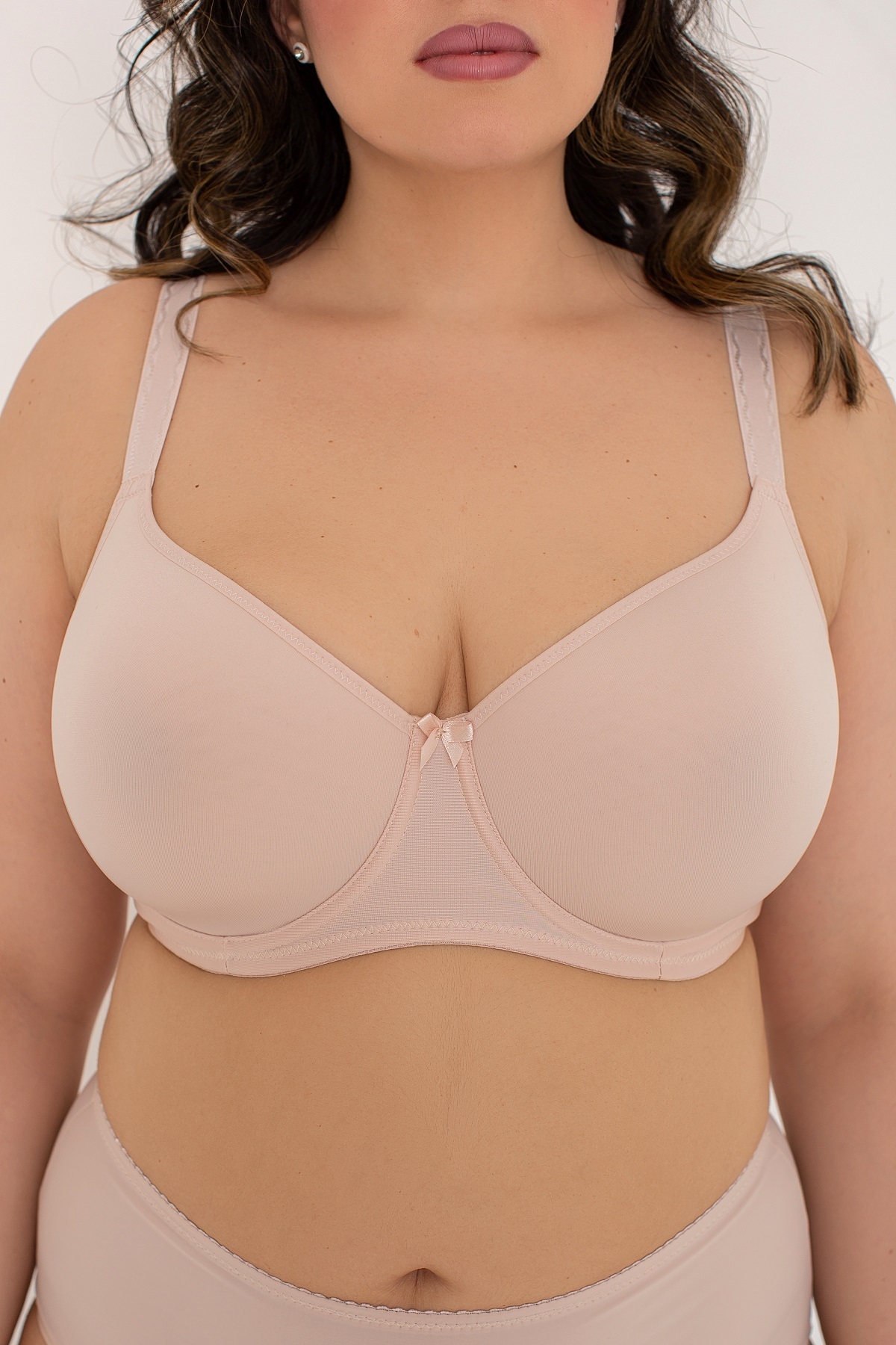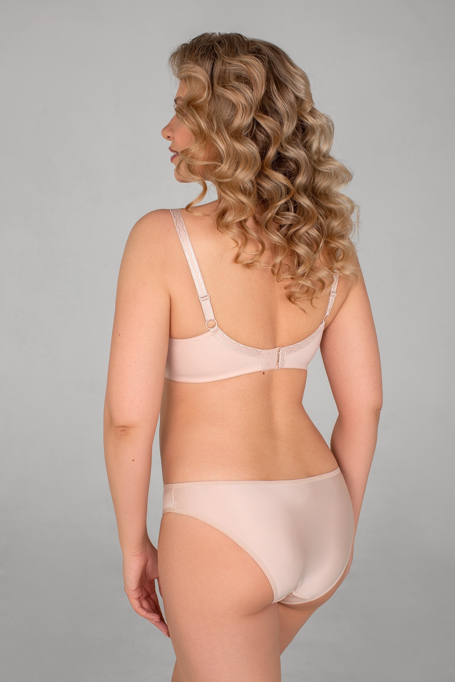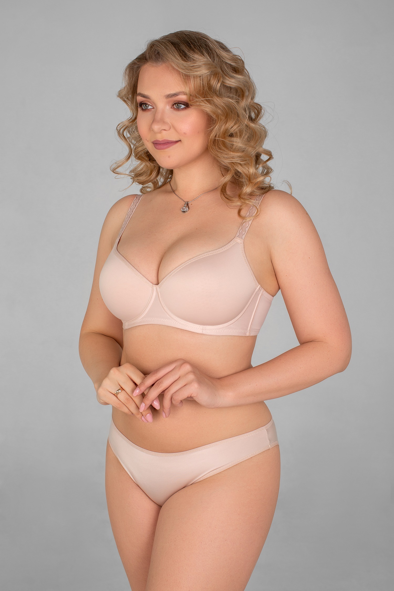 Бюстгальтер "гладкая чашка" из материала SPACER, на каркасах, с боковыми пластинами. Боковые части пояса выполнены из микрофибры. Бюстгальтер отличается легкостью и комфортом. Чашки SPACER имеют "дышащую" структуру и надолго сохраняют форму и первоначальный внешний вид.