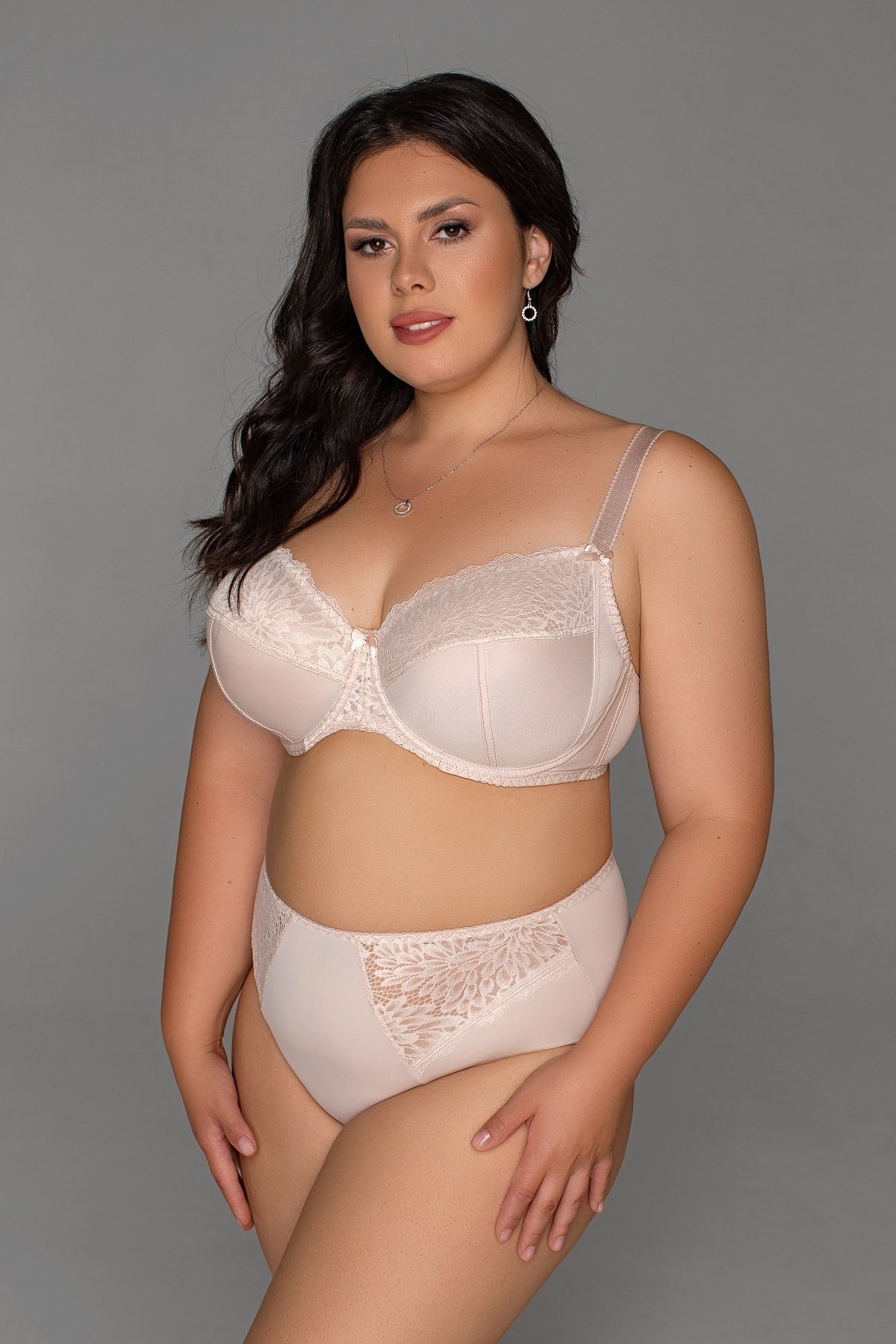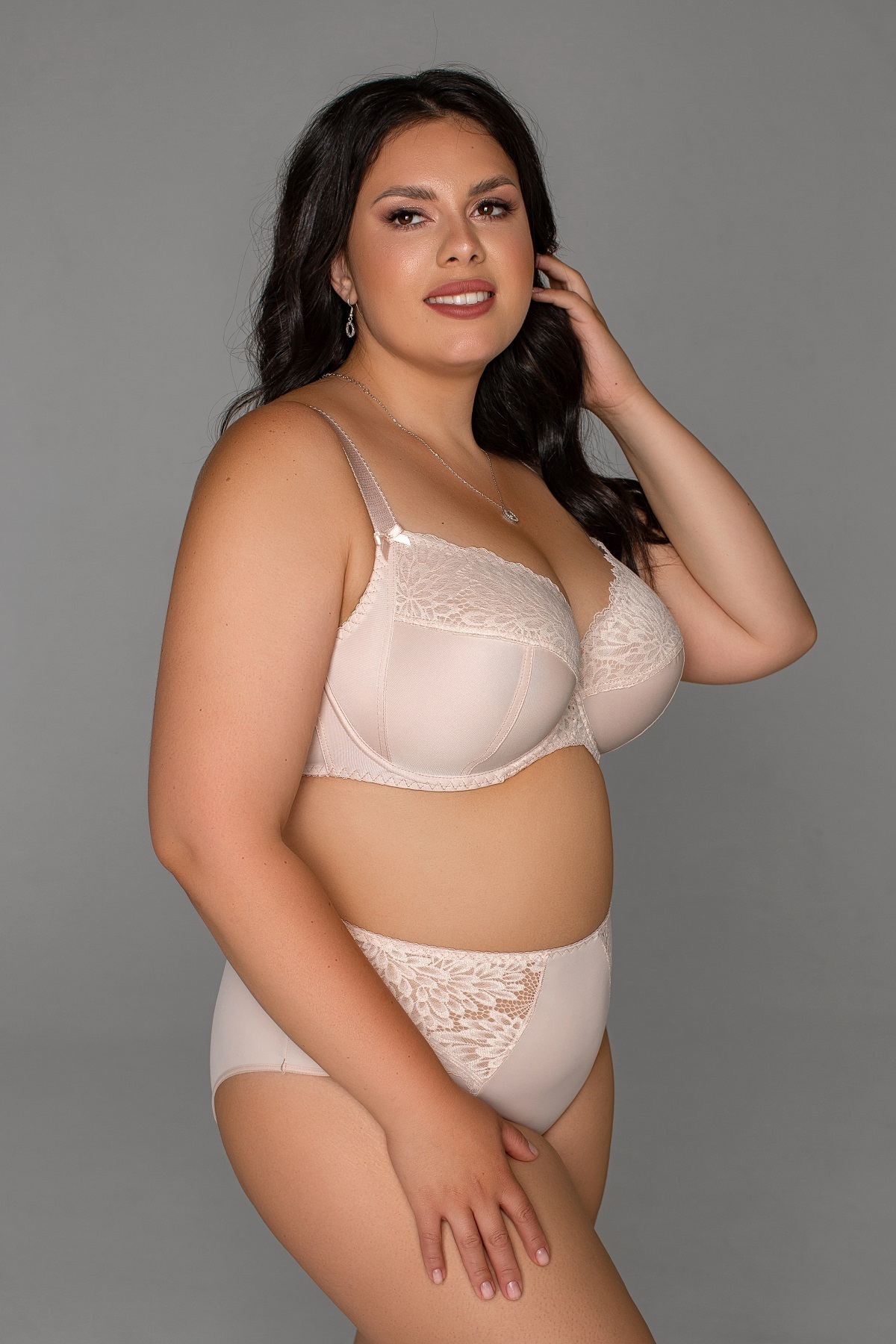 Бюстгальтер "мягкая чашка" на каркасах из неэластичного функционального полотна и кружева. Боковые части пояса выполнены из эластичного полотна.