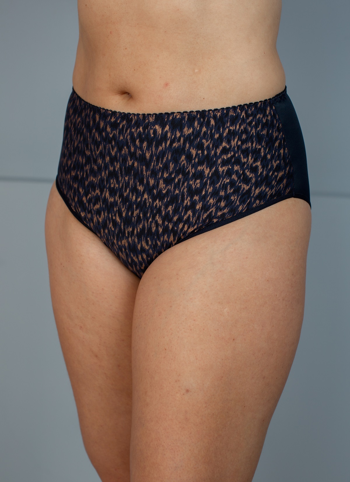Трусы из эластичного принтованного полотна и микрофибры. Высокая посадка.