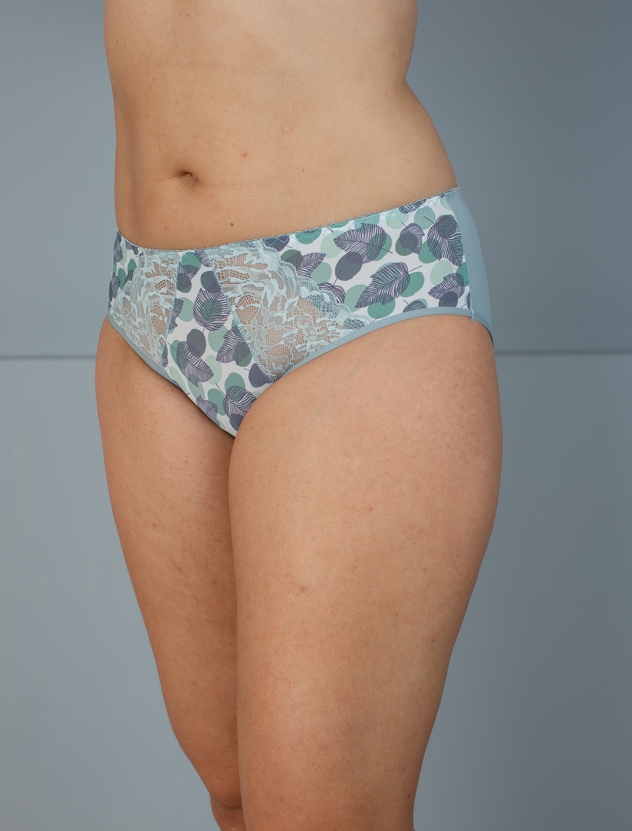 Трусы из эластичного принтованного полотна и эластичного кружева. Средняя посадка.