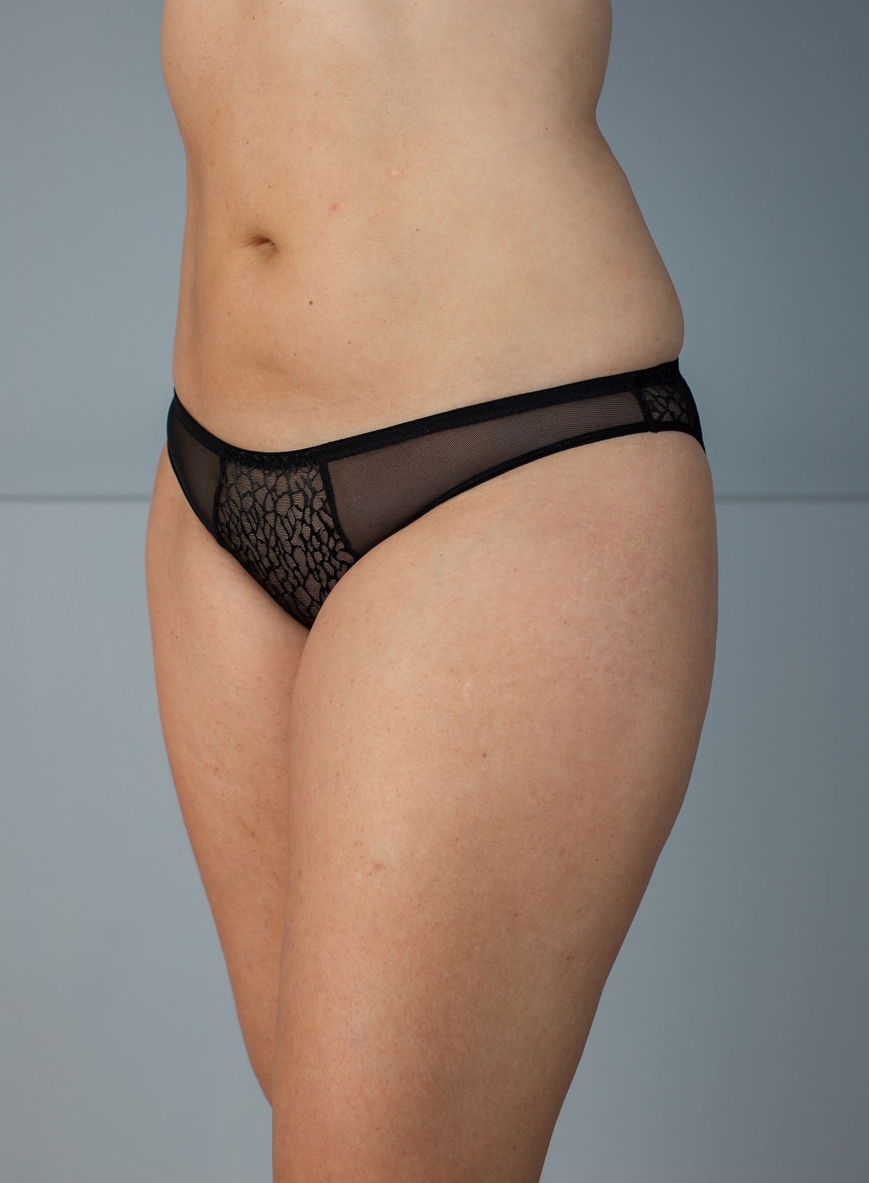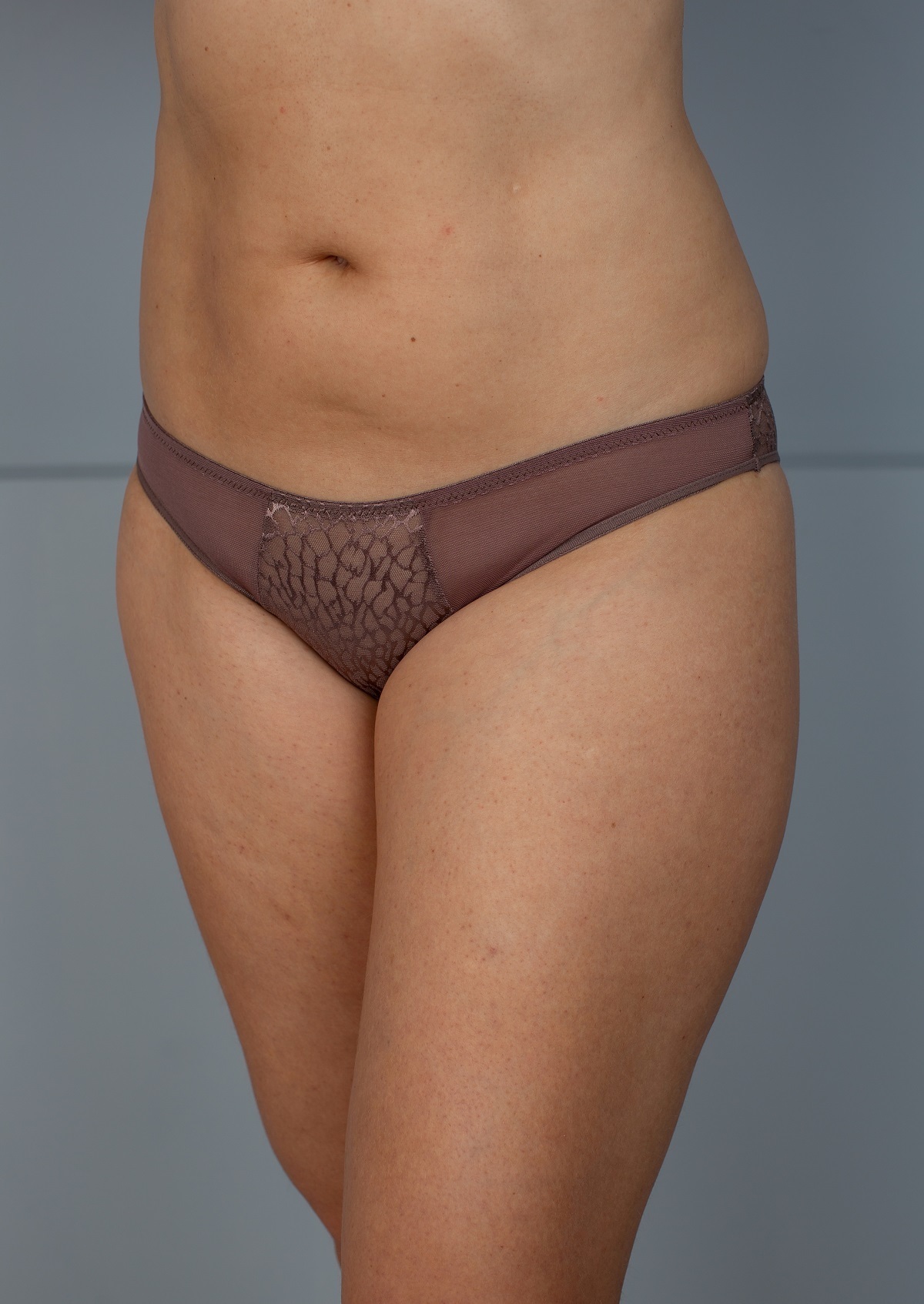 Трусы-плавки из тонкого жаккардового полотна современного дизайна и эластичной сетки.