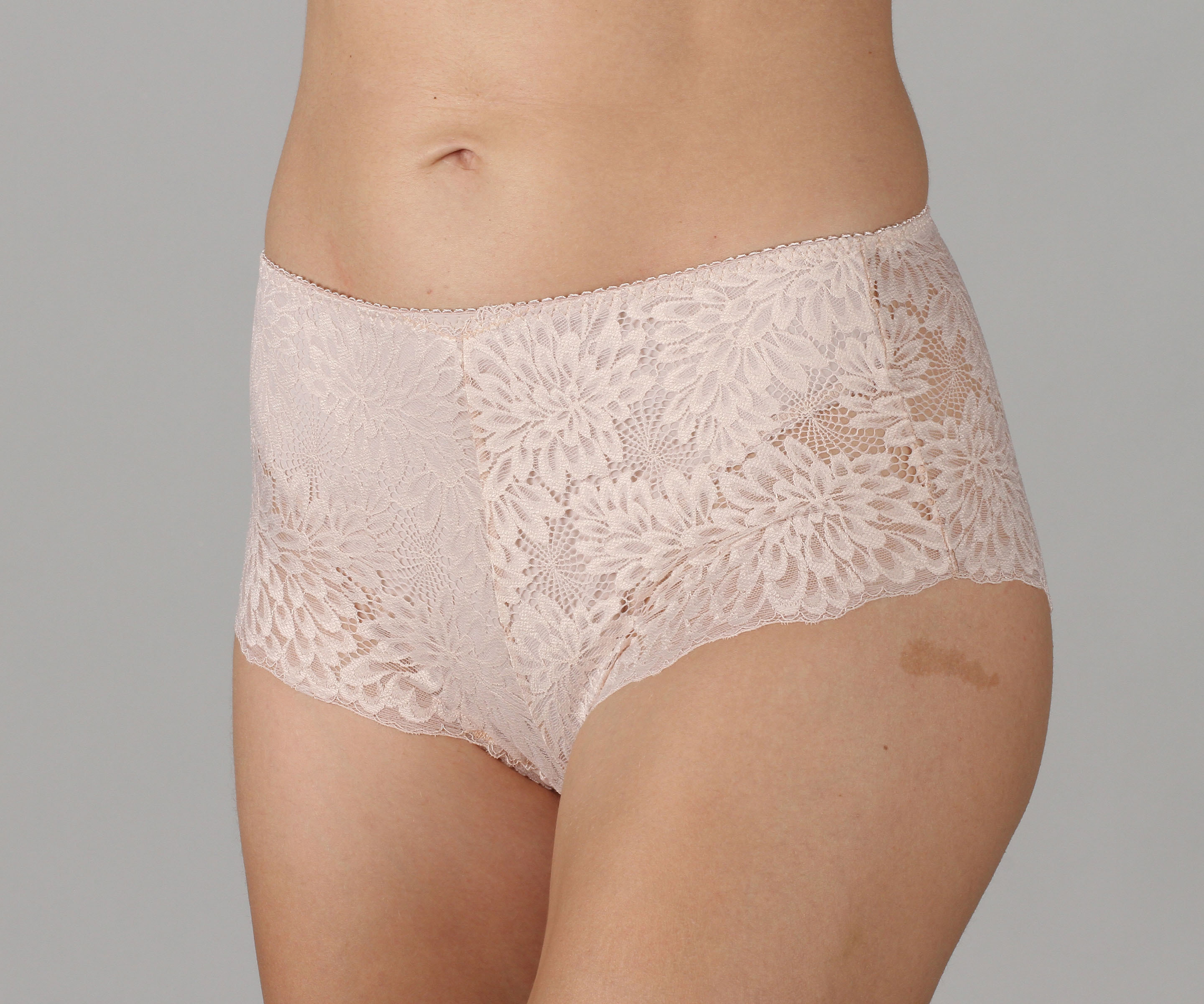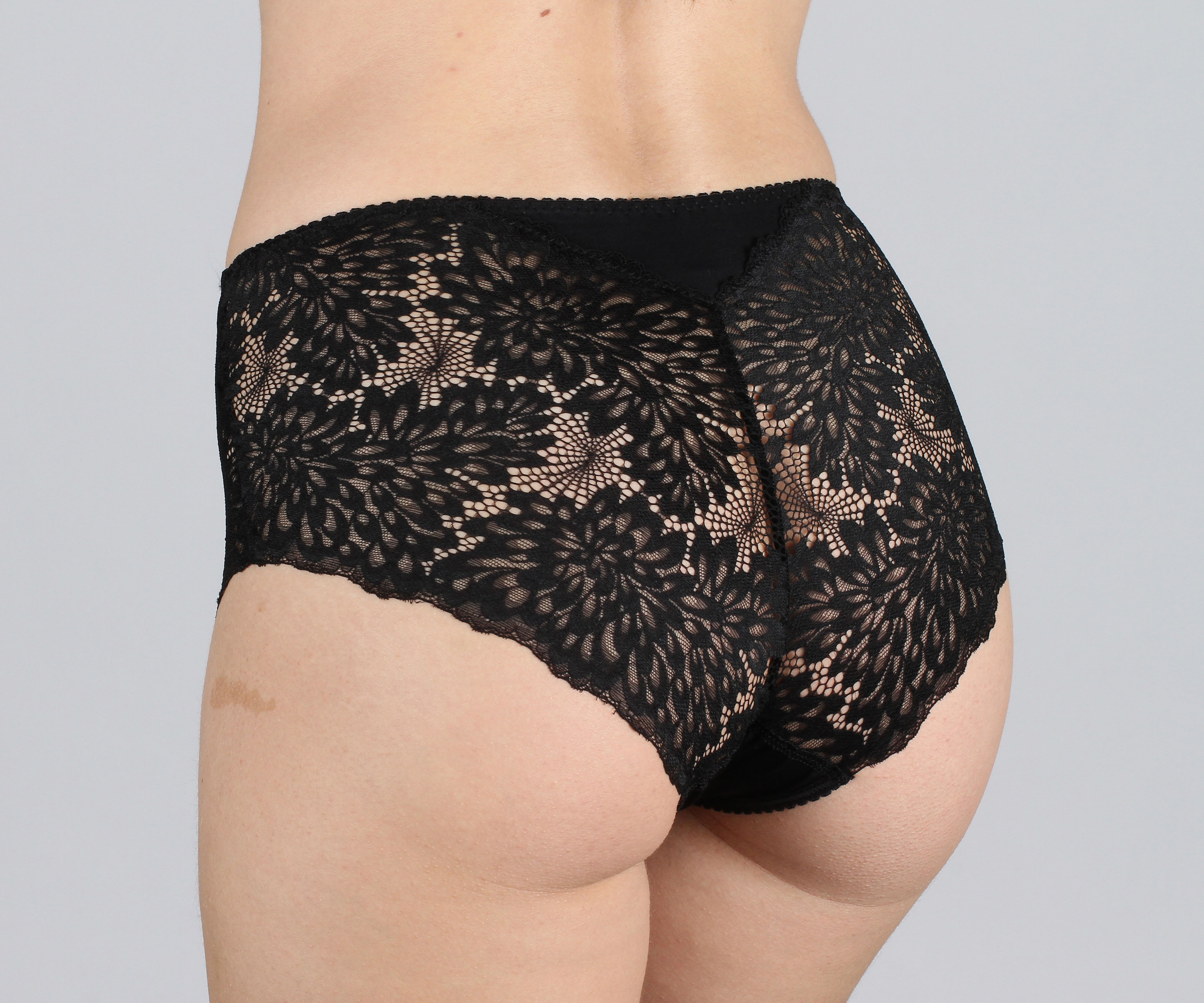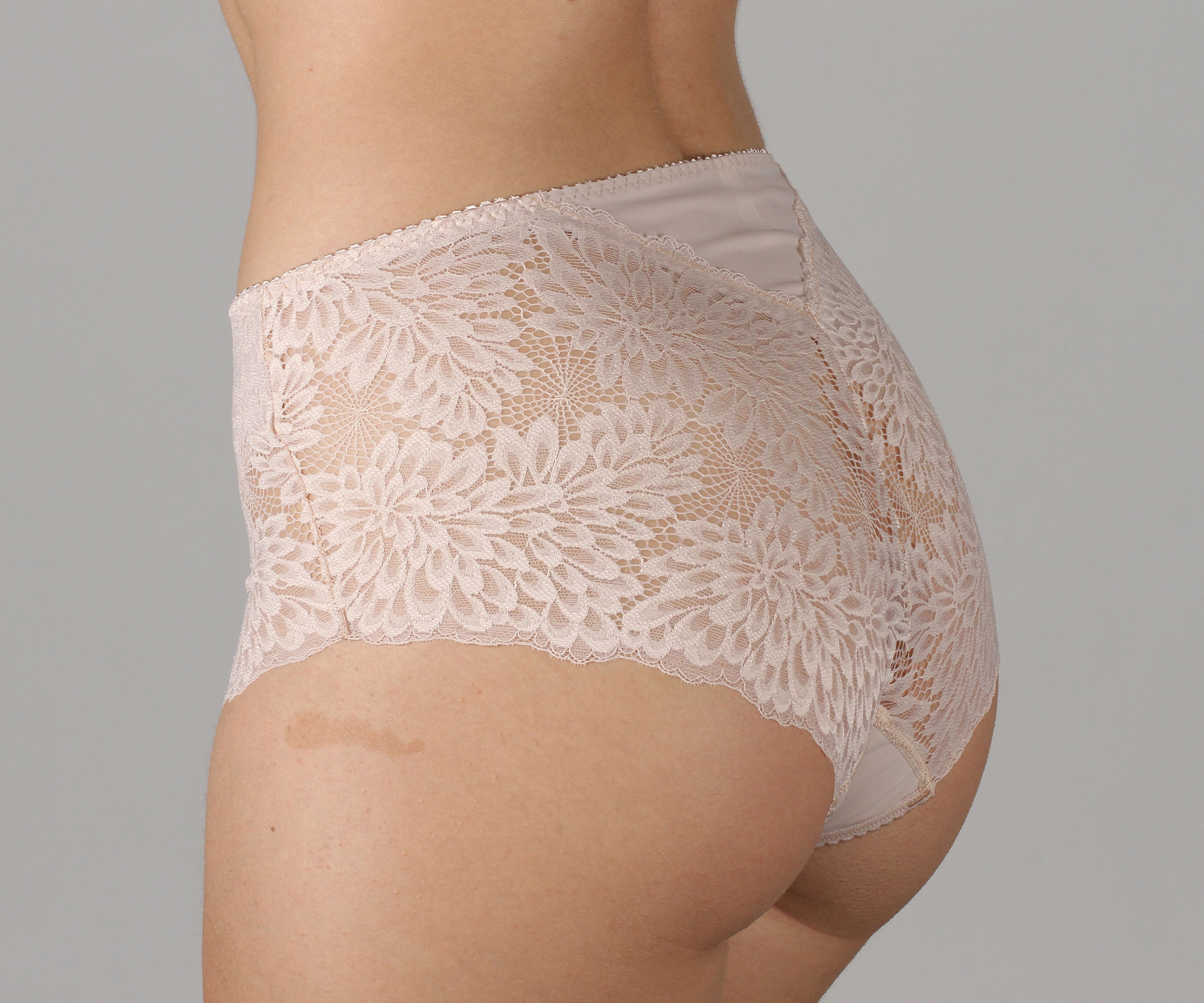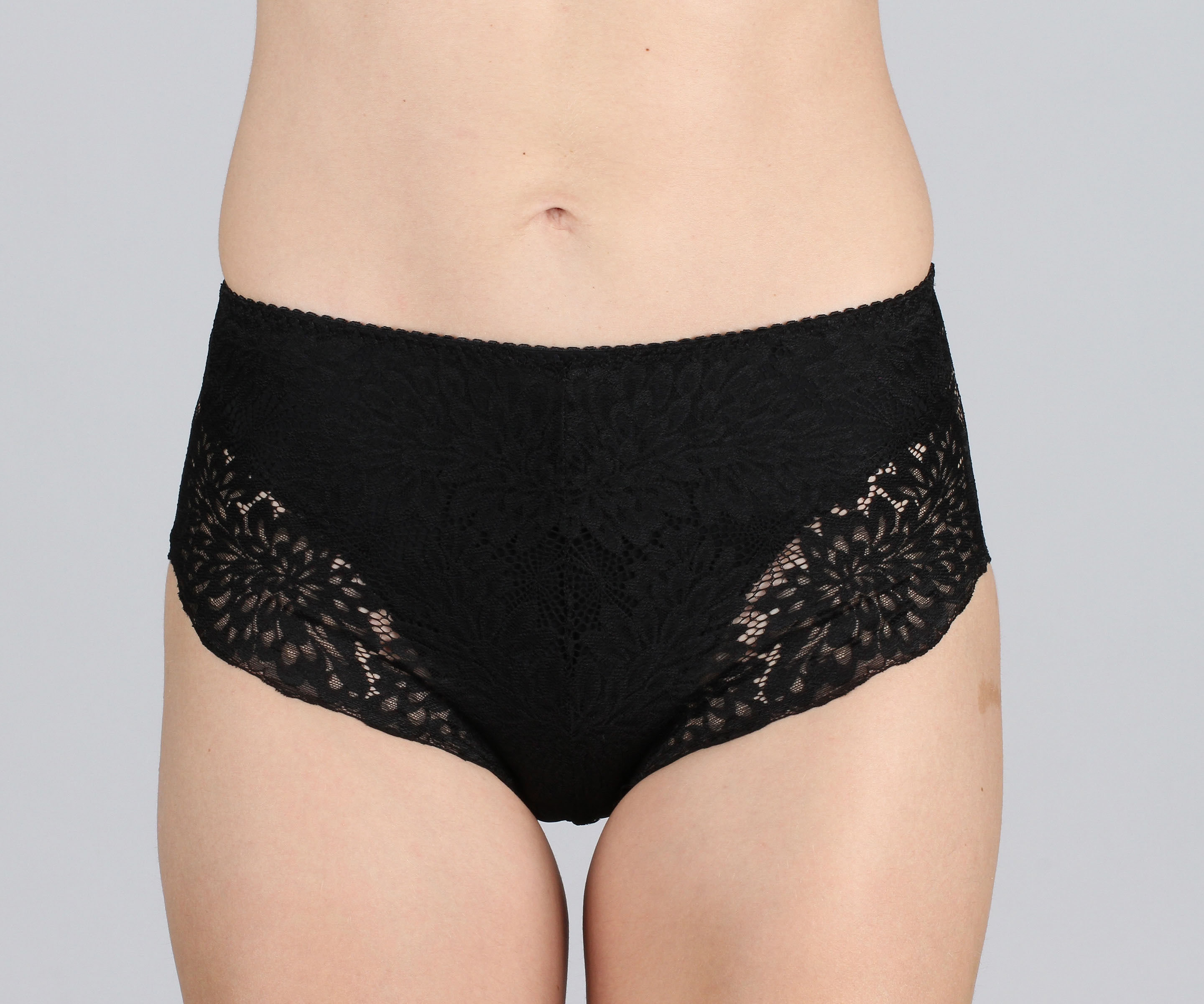 Трусы с высокой посадкой, выполнены из микрофибры и эластичного кружева, передняя часть с утягивающим эффектом.