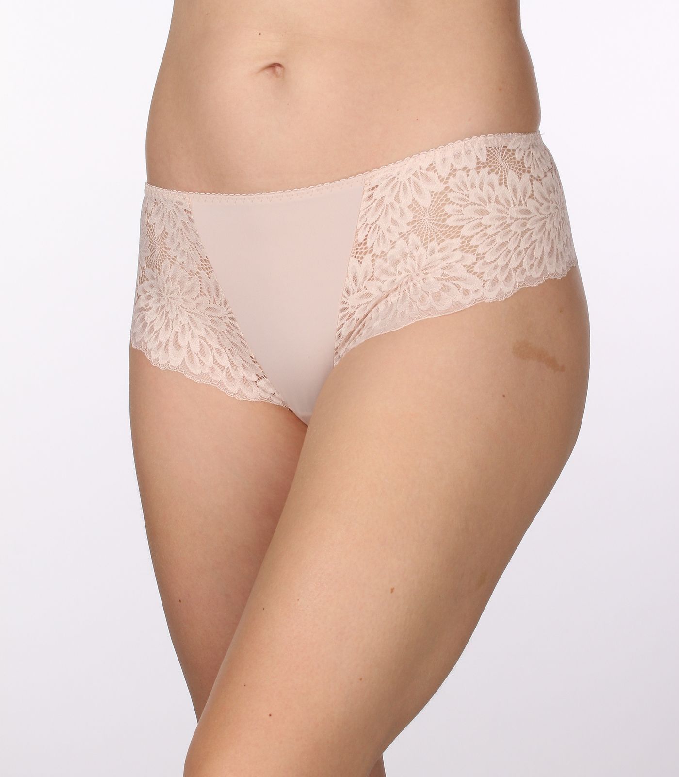 Трусы шорты-стринги, выполнены из эластичного кружева и микрофибры.