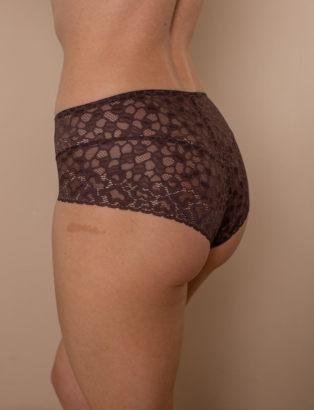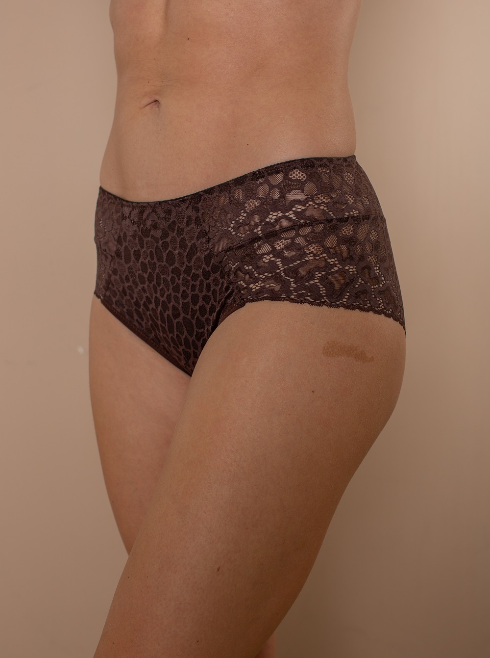 Трусы с высокой посадкой, выполнены полностью из кружева. Крой трусов позволяет создать красивый силуэт, мягко утягивая животик.