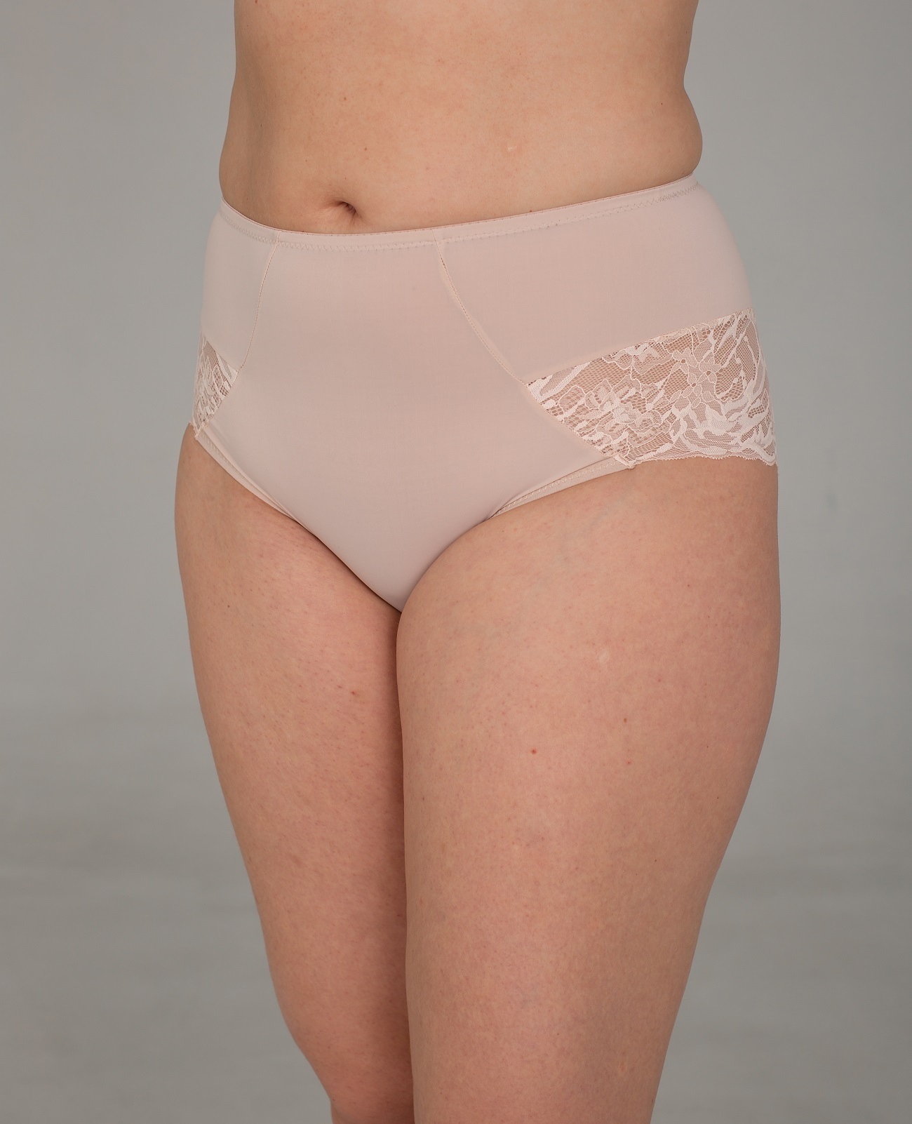 Трусы с высокой посадкой, выполнены из микрофибры и кружева. Крой трусов позволяет создать красивый силуэт, мягко утягивая животик.