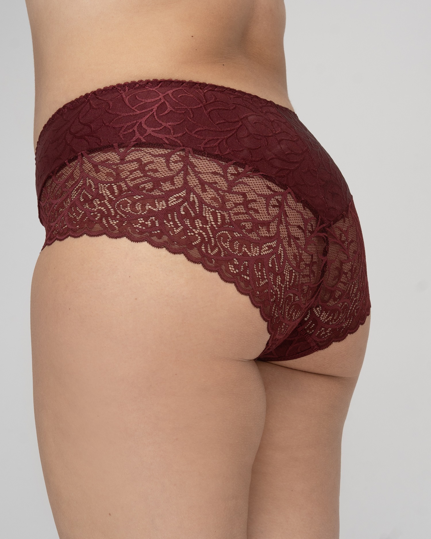 Трусы с высокой посадкой, выполнены из жаккарда и кружева. Крой трусов позволяет создать красивый силуэт, мягко утягивая животик.
