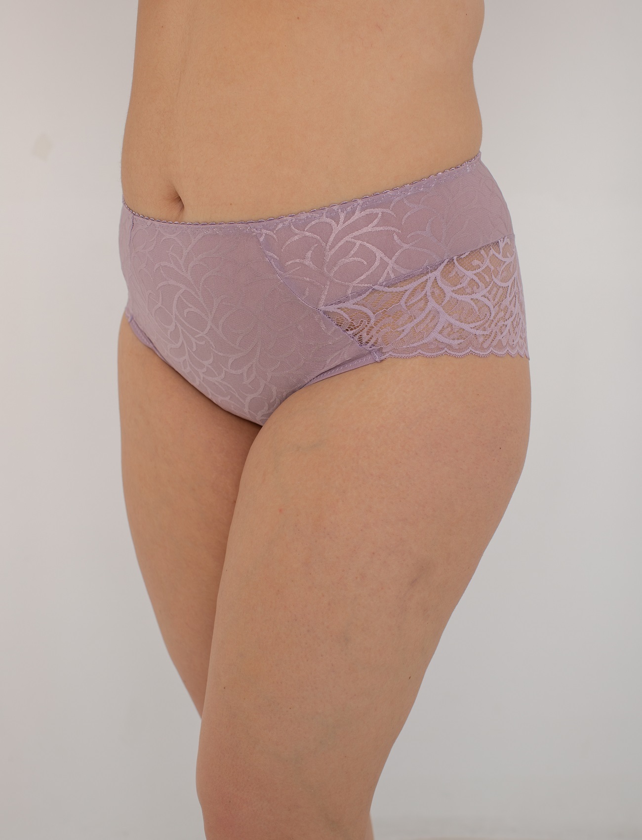 Трусы с высокой посадкой, выполнены из жаккарда и кружева. Крой трусов позволяет создать красивый силуэт, мягко утягивая животик