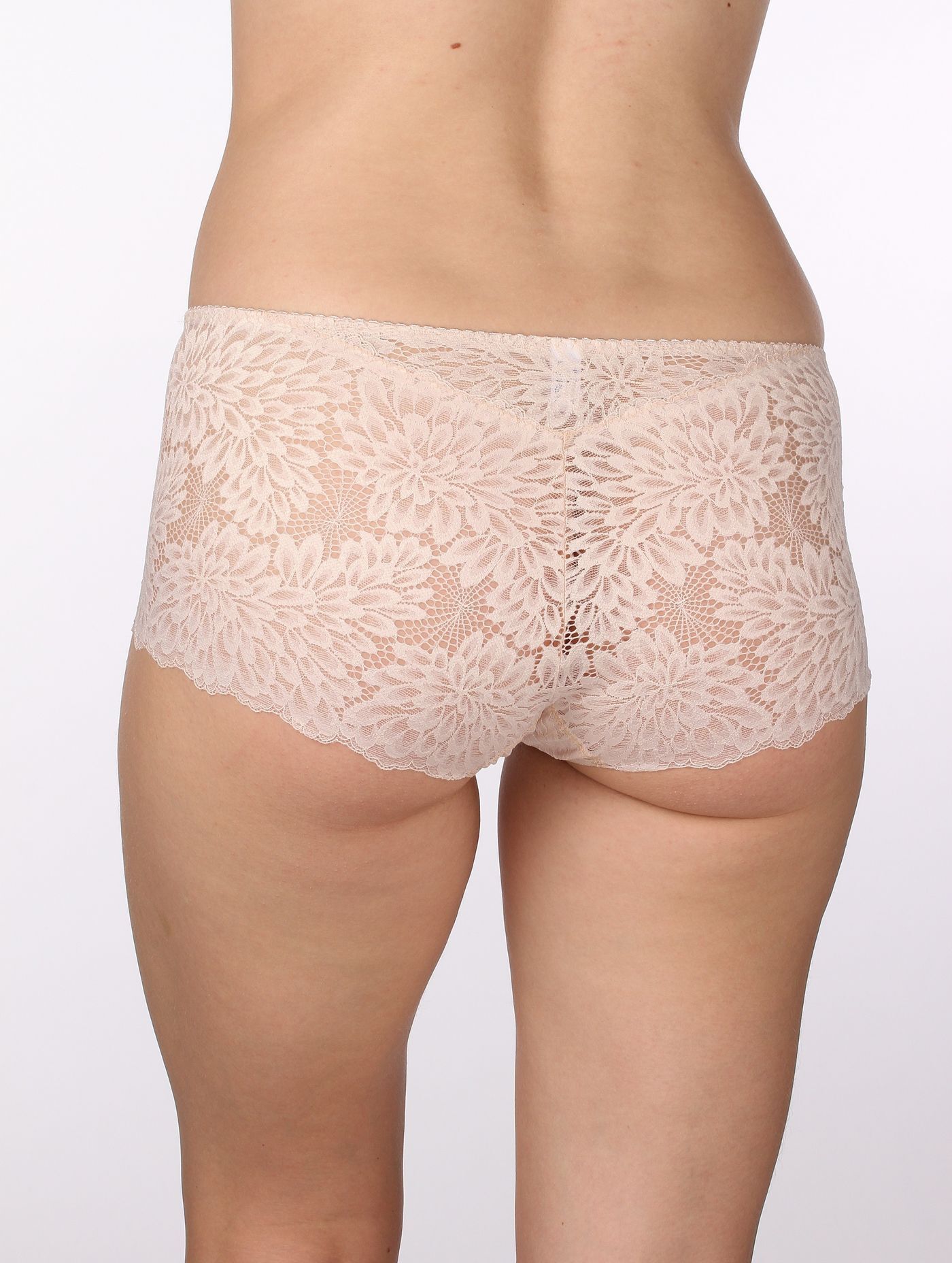 Трусы-шорты, выполнены полностью из эластичного кружева.